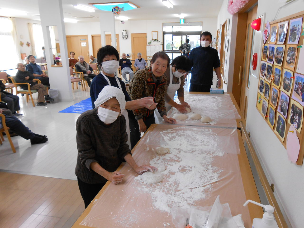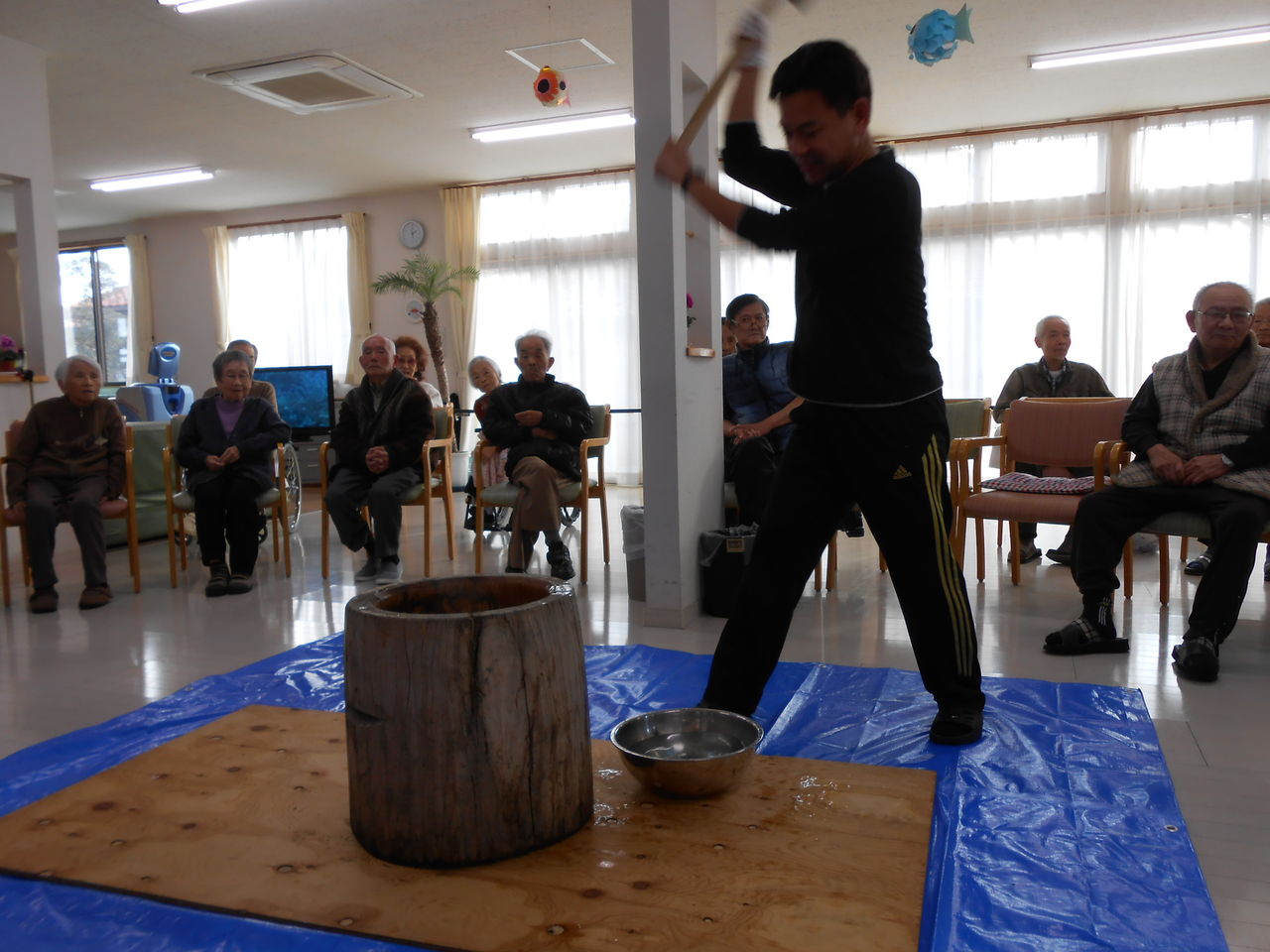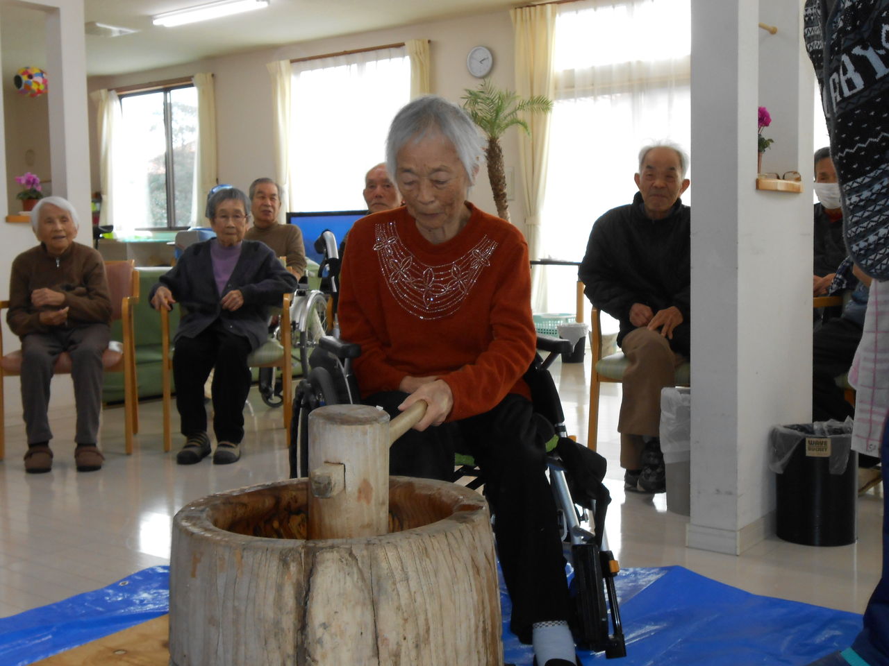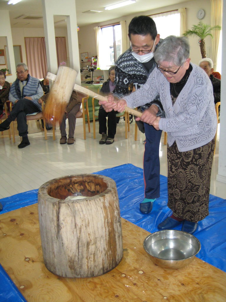 ご利用者も職員も一緒に餅つきがんばりました