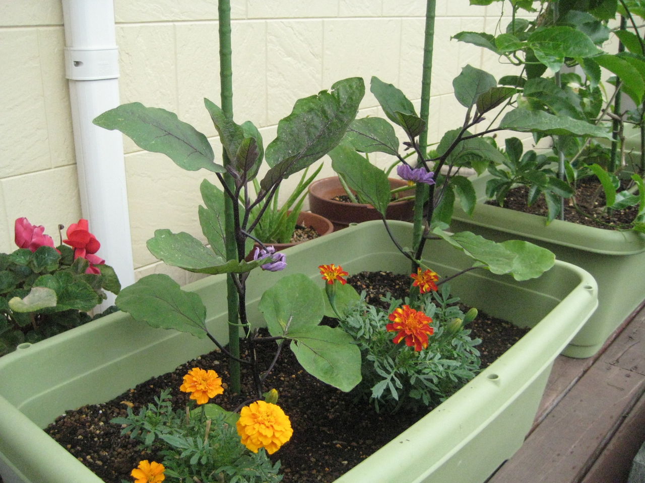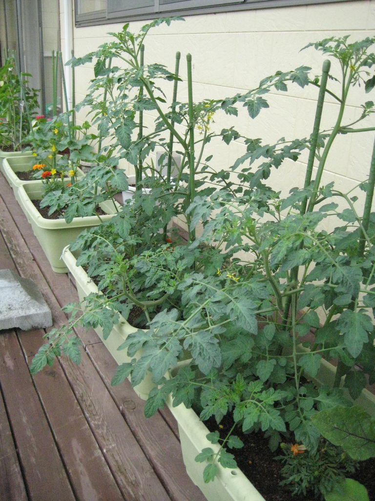 ウッドデッキの片隅にプランターで育ててます